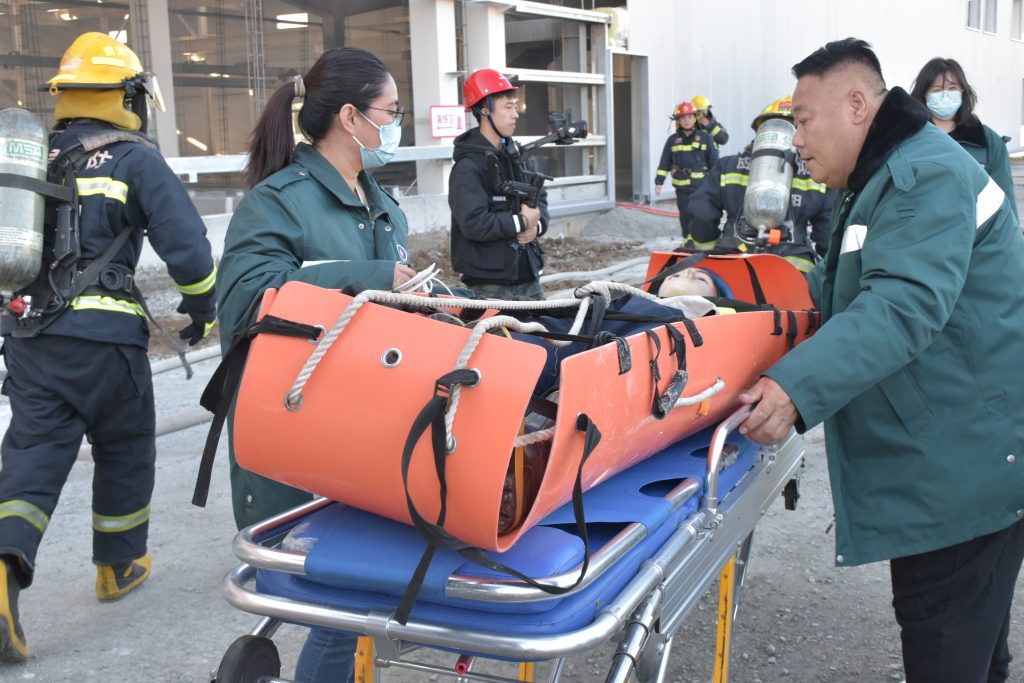 演練現場,中辰鋼構微控飛輪項目部施工人員積極響應,迅速啟動應急預案,組織人員疏散和初期火災撲救。在疏散逃生演練中,演練人員按照預定路線和方法,迅速、有序地進行疏散逃生。消防救援隊伍展示了快速反應、高效處置火災的能力,以及使用各種滅火設備和器材的技能。醫療救護人員對傷員進行了現場急救和快速轉運,确保了傷員得到及時有效的救治。整個演練指揮得力、組織嚴密、分工明确、配合有序,現場演練達到預期效果。演練結束後,消防隊領導對建築工地常見的火災事故隐患、初期火災撲救、火情控制、逃生知識及注意事項等進行現場講解。