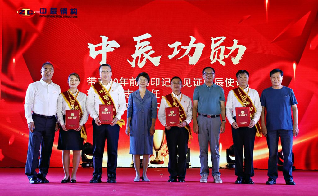 帶着20年前的印記,見證中辰使命,理性+意志+責任,是他們功勳樣本的表達。此次表彰,評選出“中辰功勳”4名。他們分别是中辰鋼構總經理盧兆會、副總經理陳景武、副總經理任憲恒、供應部部長高蕊馨。