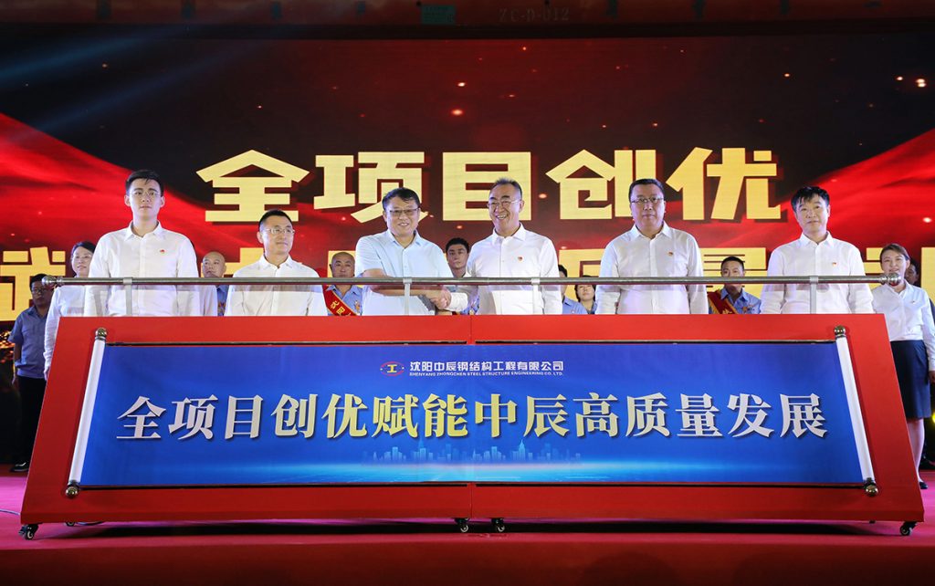 遼甯省建築業協會副會長、秘書長孟寶良、中辰鋼構高層黨委書記、董事長宋彪、總經理盧兆會、副總經理陳景武、副總經理任憲恒、科創工業地産總經理宋宏達一起為中辰高質量發展新十年共同啟航,表彰及風采展示環節在啟航儀式中落下帷幕。