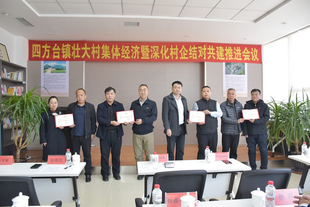 會上,四方台鎮為沈陽市參與結對共建的企業家代表頒發榮譽證書。八音台村與德邦公司順利舉行簽約儀式。