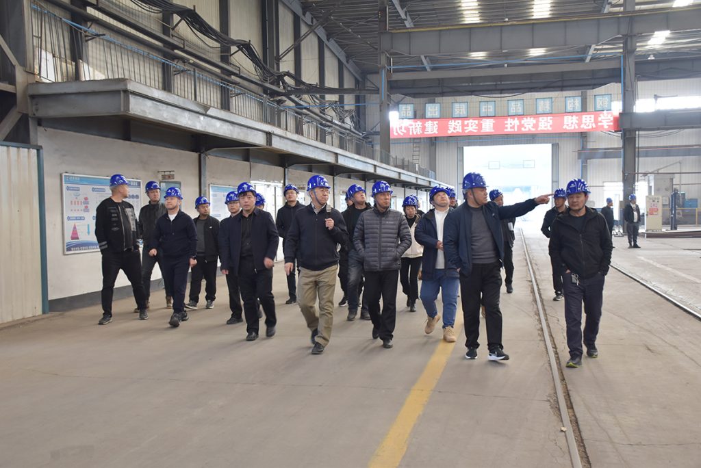 會後,一行人前往中辰鋼構黨建展廳及鋼結構制造車間進行參觀。
