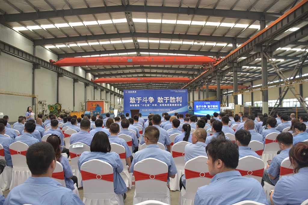 會上,經營中心總經理盧兆會、工程中心總經理陳景武、制造中心總經理任憲恒、财務部主管任滢、質量總監肖占興、安全總監甯遠征分别作《2024上半年工作總結及下半年工作計劃》。各部門直面工作中的不足之處,秉持“奮鬥與創新”的核心文化,以謙遜謹慎、戒驕戒躁的精神與作風,持續提升部門各項工作水平。