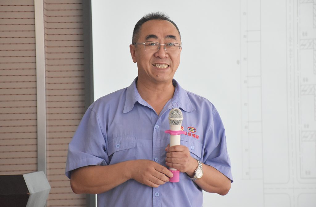 遼甯中盛綠建鋼品股份有限公司總經理馮建斌發言。
